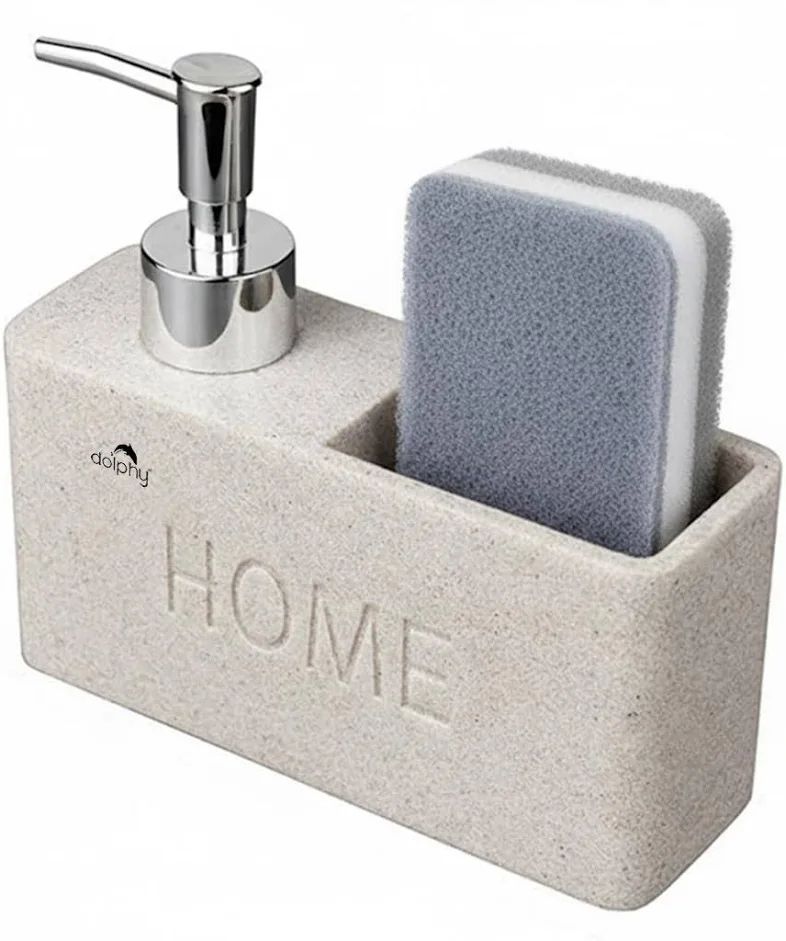 auto draftDolphy Resin Soap Dispenser for Bathroom | 2 in 1 Soap Dispenser with Sponge Holder | Modern & Designer Decor for Home