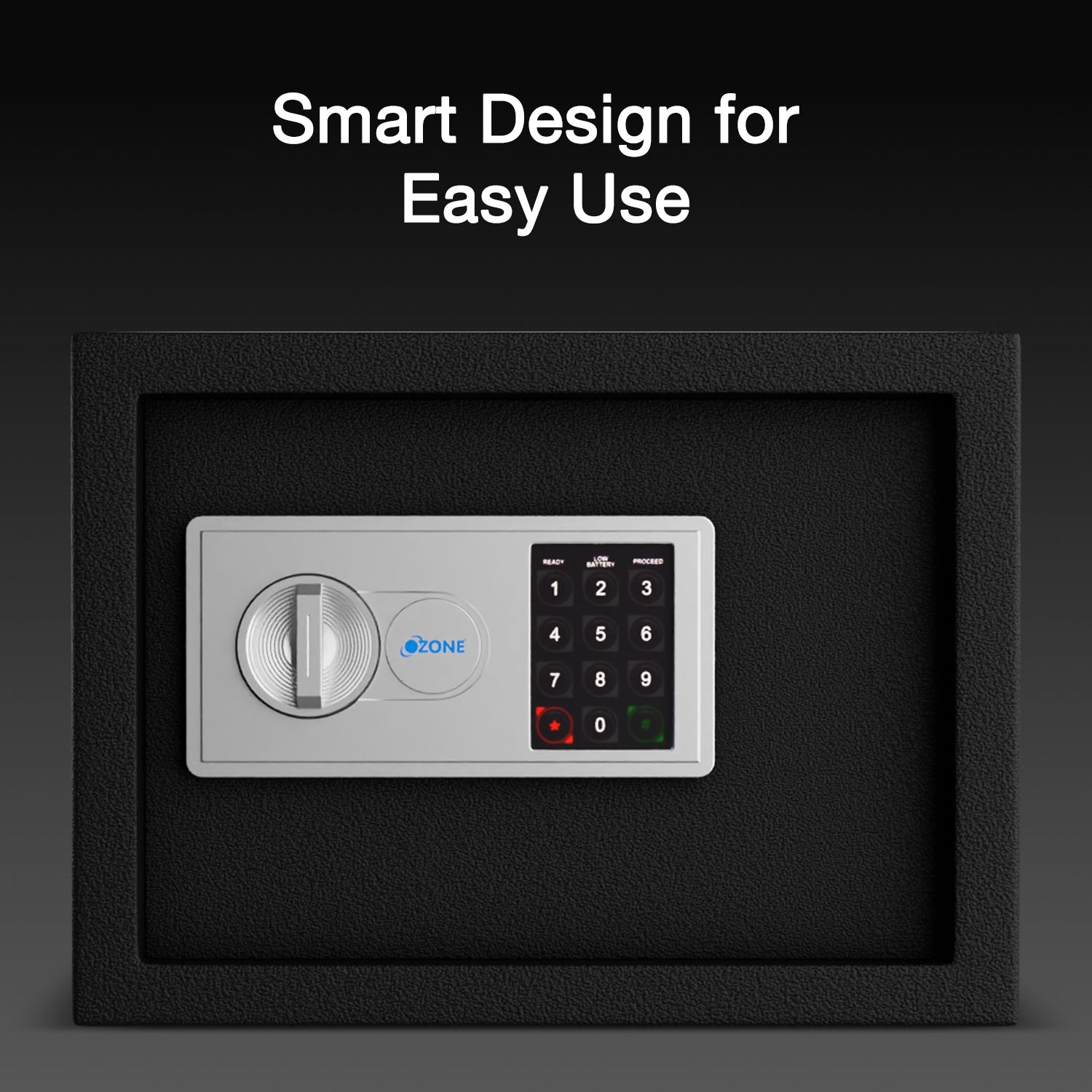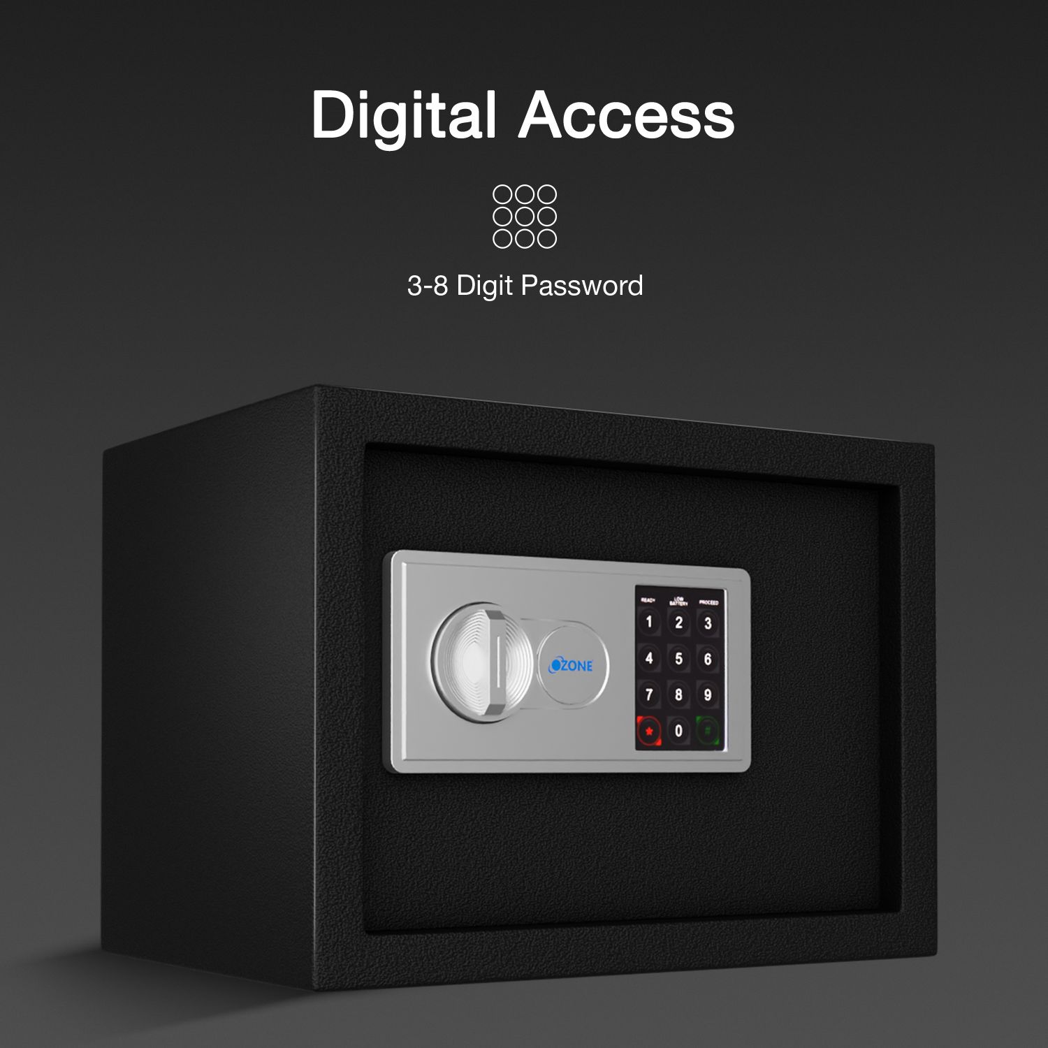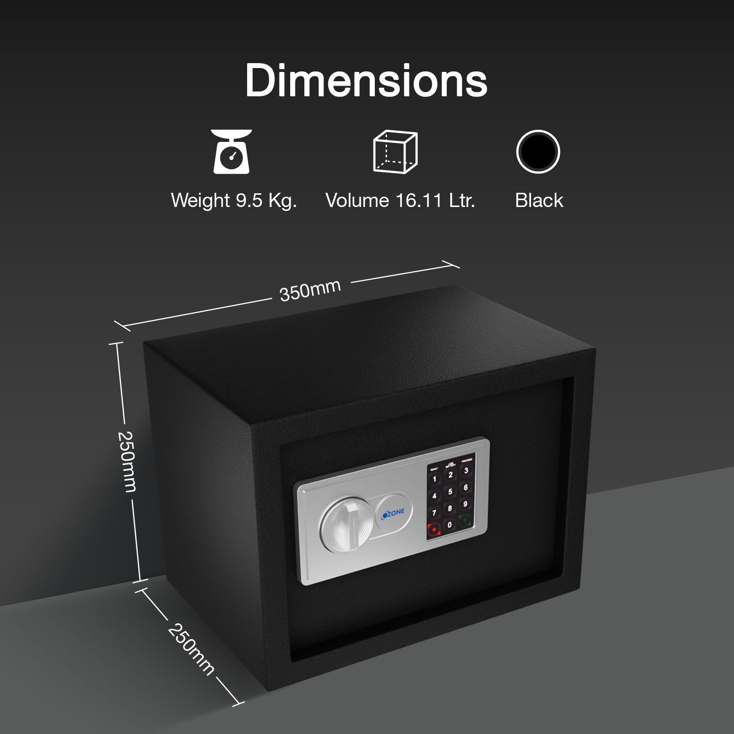 Ozone 16.11 Litres Digital Safe Locker for Home & Office – Digital Lock, 1-Way Unlocking (Password), Size: 250H x 350W x 250D mm, Weight: 9.5kg, 2-Year Warranty (Black)